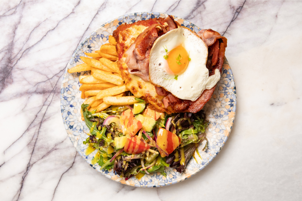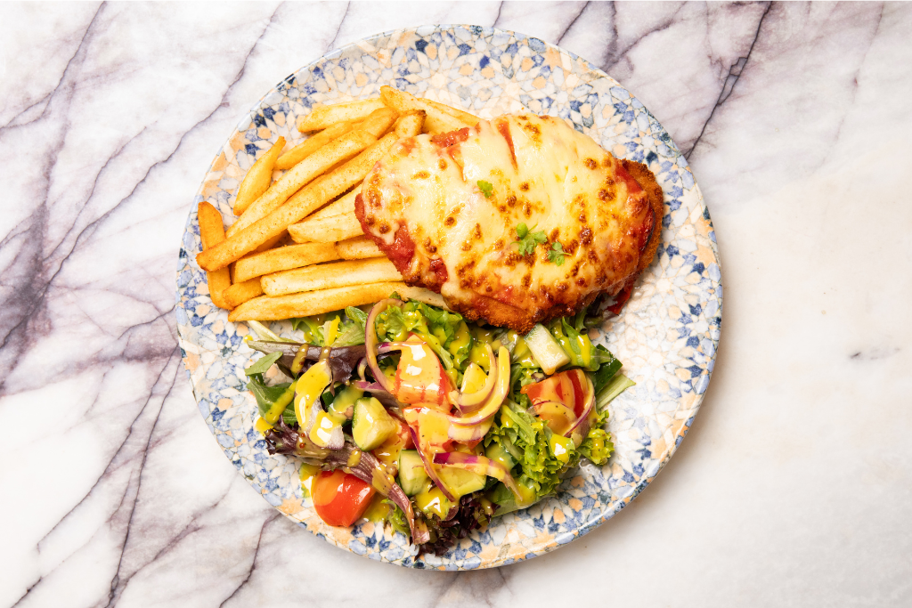 The front room has a central coffee bar open to the street which offers takeaway food. Your pub favourites including Schnitzels, Steaks, Fish & Chips and of course a Parma are available from 11am.